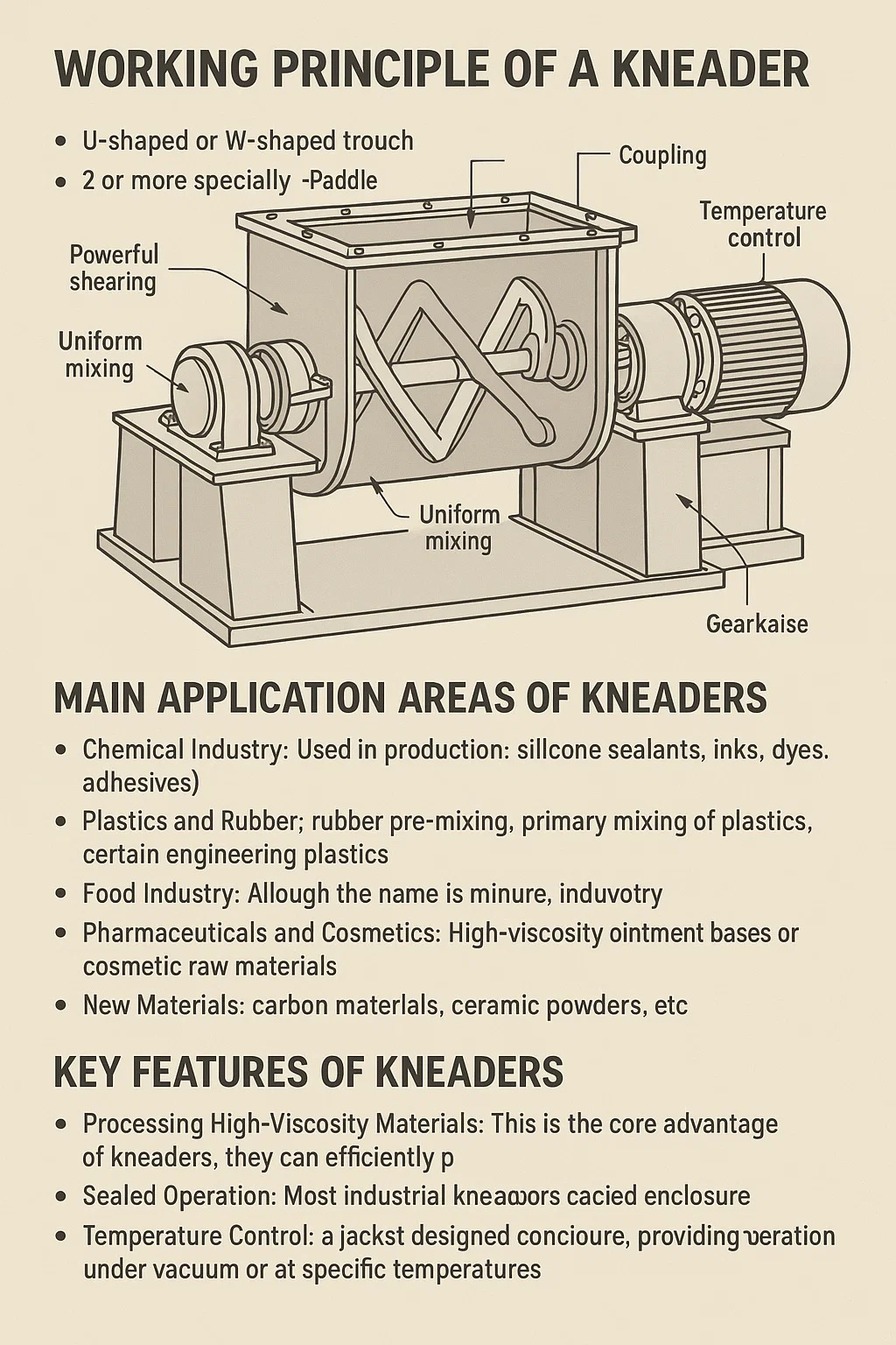 العجن، المعروف أيضًا باسم الخلاط أو خلاط العجين، هو جهاز صناعي يستخدم في المقام الأول لخلط المواد وعجنها وتقليبها بقوة لتحقيق حالة بلاستيكية موحدة. يمكنك أن تتخيله كوعاء خلط فائق القوة، ولكن بدلاً من المكونات اليومية، فإنه يتعامل مع مختلف المواد اللزجة أو شبه الصلبة أو عالية اللزوجة التي تتطلب خلطًا عالي الكثافة في الإنتاج الصناعي.