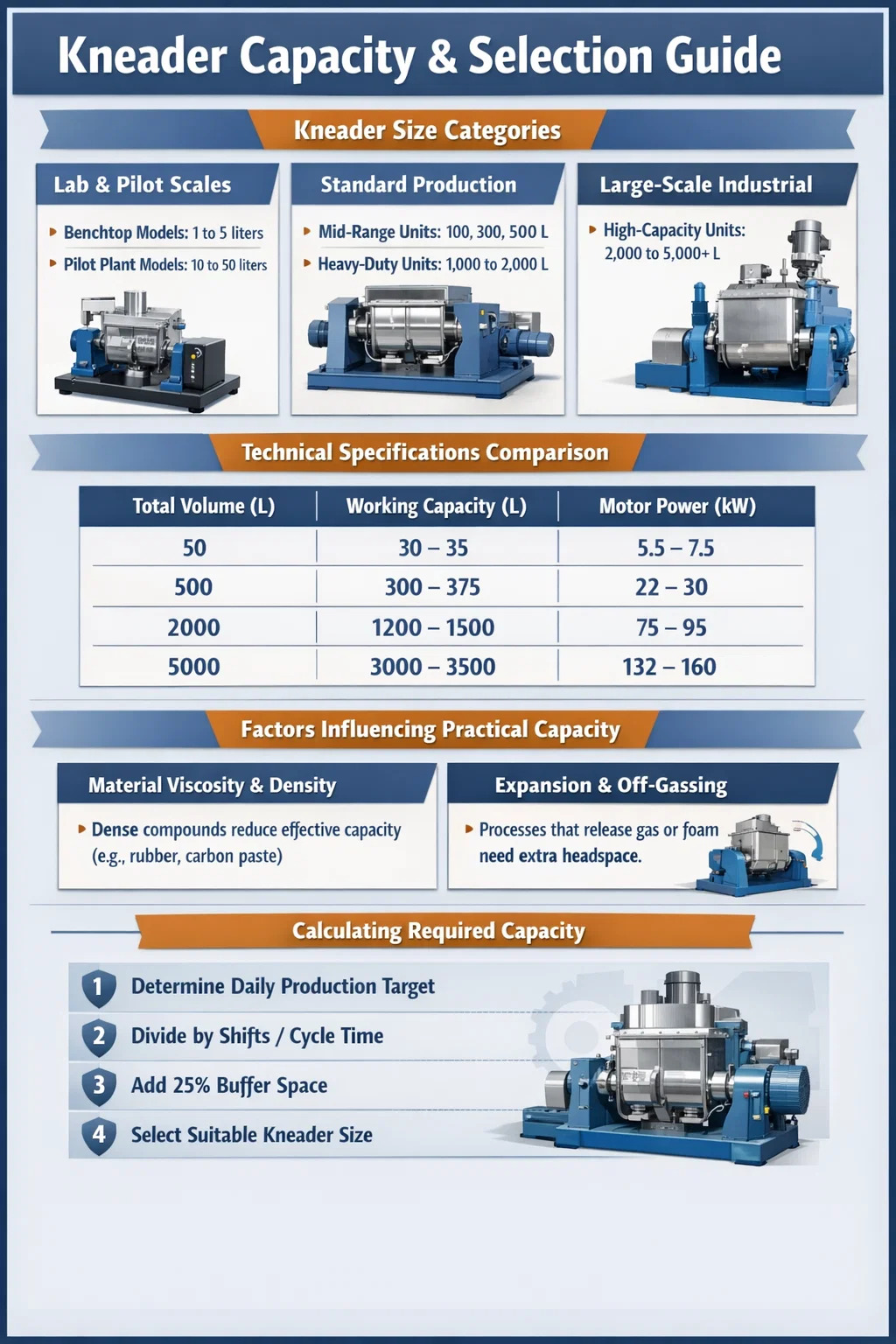 القدرة الفعالة أ عجن مطاط أو الخلاط الكيميائي لا يتعلق فقط بحجم الخزان. تحدد عدة عوامل فيزيائية كمية المواد التي يمكنك معالجتها فعليًا لكل دفعة: